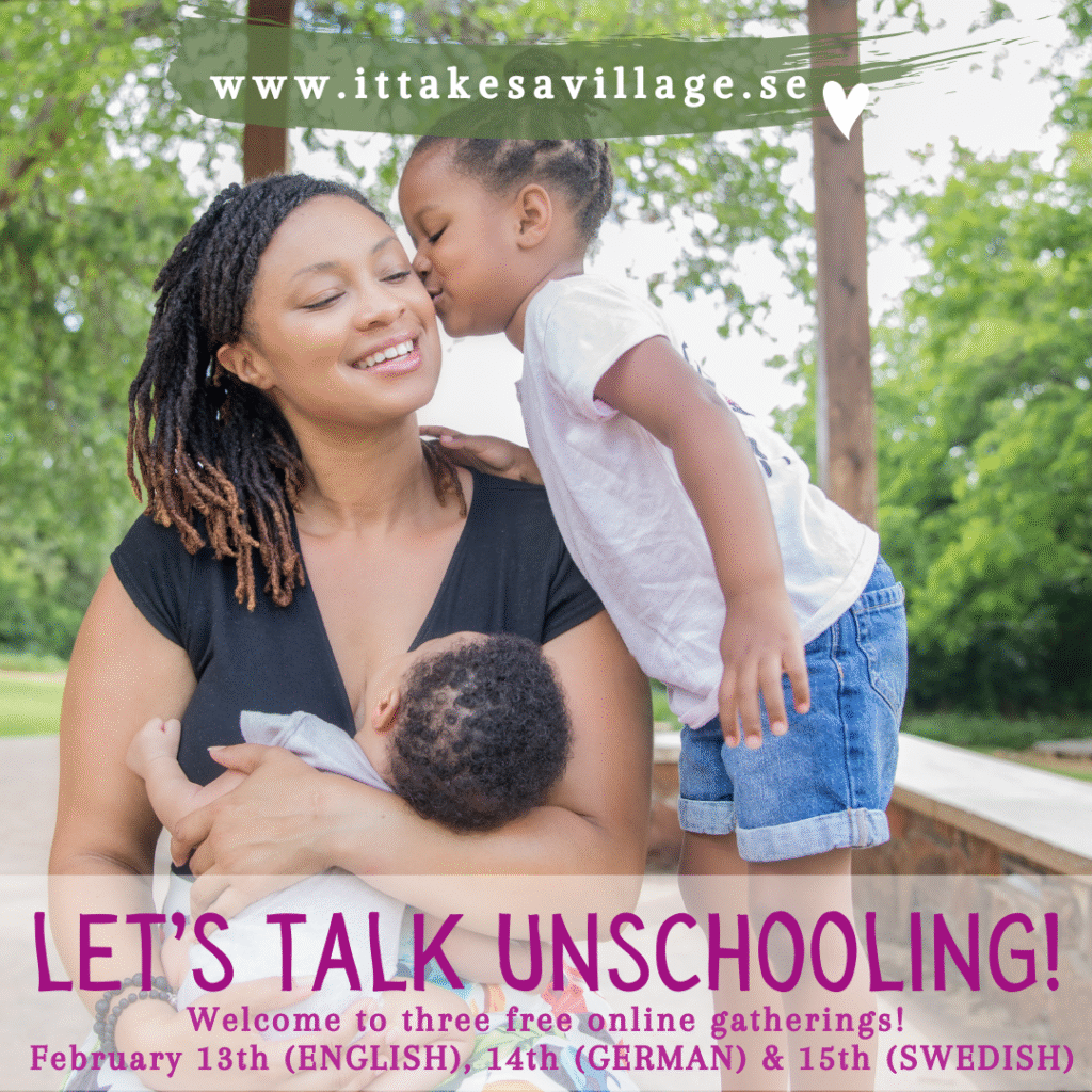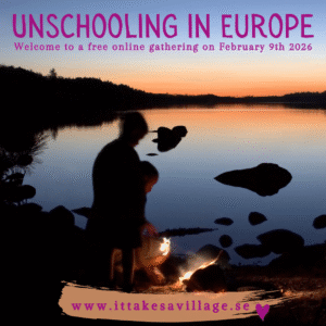 We’ll meet on Monday, February 9th at 15hrs CET to talk Unschooling in Europe. Where are the hot-spots (the known ones and the more secret ones), what are the regulations and possibilities, are there and unschoolers who want to live in a nourishing neighbourhood etc.